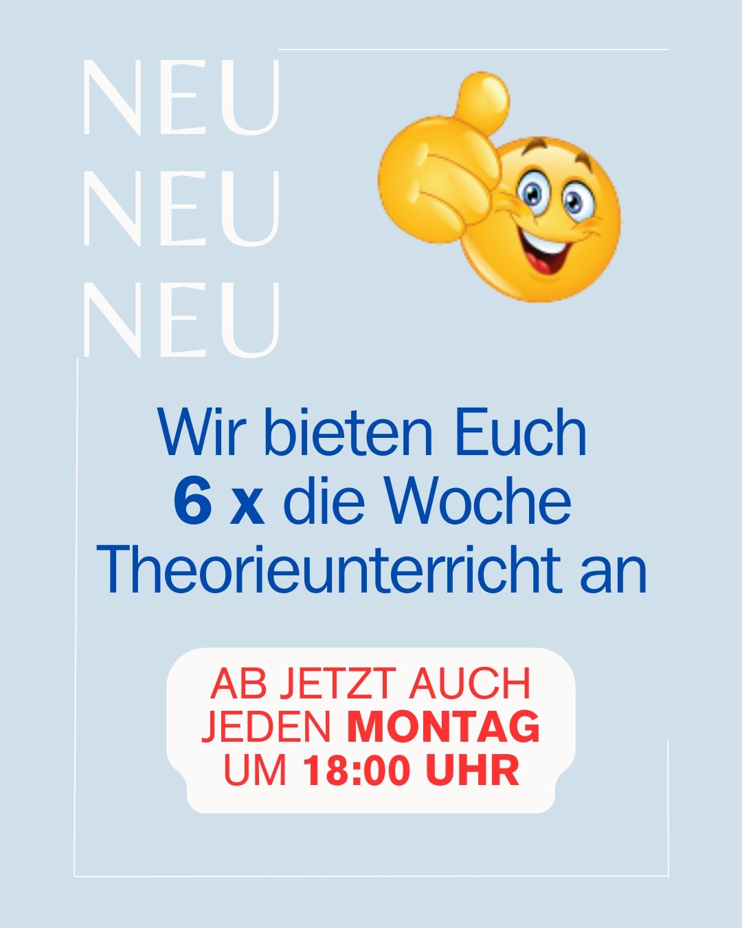 Ab jetzt auch jeden Montag um 18:00 Uhr Theorieunterricht!